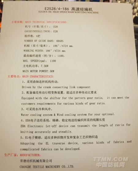 此次展會,常德紡織機械有限公司展出了E2528/4-186高速經編機等產品。