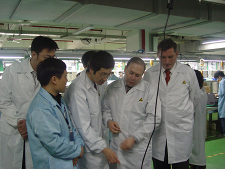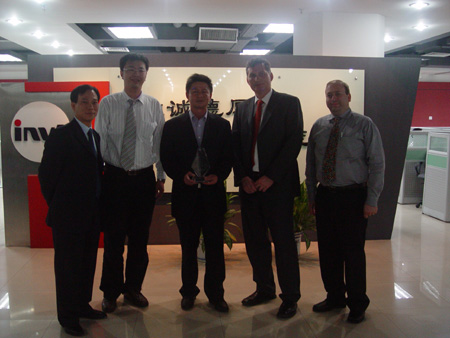 2007年3月28日下午14時,全球最大的半導體供應商Infineon Technologies AG的Mr. Martin(德國本部工業能源高級總監)和Mr. Vivek(亞太區負責人)及其代理商深圳市裕能達有限公司董事長阮漢基先生一行九人親臨我司參觀訪問。Infineon Technologies AG總部位于德國慕尼黑,其前身系西門子半導體部門,主要提供半導體產品與系統解決方案,也是我司目前最大的IGBT供應商。      參觀期間,與我司董事長兼總經理黃申力先生就IGBT的合作進行了愉快洽談,增進了我司對Infineon Technologies AG的了解。也讓Infineon Technologies AG充分了解了英威騰的歷史及未來的發展方向與需求。此次會談為我司未來實現戰略采購邁出了關鍵性的一步。Mr. Martin Hierholzer參觀我司廠區后不禁感慨:英威騰公司是他所參觀的企業中增長速度最快且頗具潛力的企業。