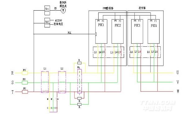 3、整流與逆變的起、停車順序,啟動時集控系統先給整流器起車信號,整流起車后延時5s給出逆變起車信號,逆變起車;停車時,逆變減速到0Hz,運行繼電器輸出信號停止后整流停車。