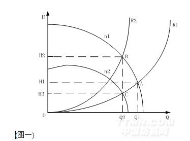 風機在管路特性曲線R1工作時,工況點為A,其流量壓力分別為Q1、H1,此時風機所需的功率正比于H1與Q1的乘積,即正比于AH1OQ1的面積。由于工藝要求需減小風量到Q2,實際上通過增加管網管阻,使風機的工作點移到R2上的B點,風壓增大到H2,這時風機所需的功率正比H2Q2的面積,即正比于BH2OQ2的面積。顯然風機所需的功率增大了。這種調節方式控制雖然簡單、但功率消耗大,不利于節能,是以高運行成本換取簡單控制方式。