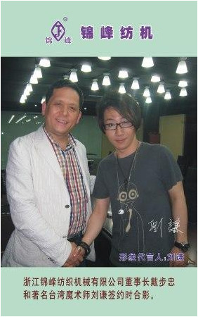 我公司董事長兼總經理戴步忠先生,于09年4月22日在上海喜萊登酒店與著名臺灣魔術師劉謙簽下合約,正式邀請劉謙作為錦峰品牌的形象代言人,“神奇般的梳理效果”——這是錦峰紡機打造民族品牌,提升企業形象的創新舉措,在行業內也是首屈一指。