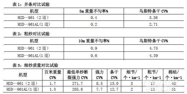 HSD?961AL(自調勻整)單道并條與HSD?961型(不帶勻整)兩道并條對比試驗