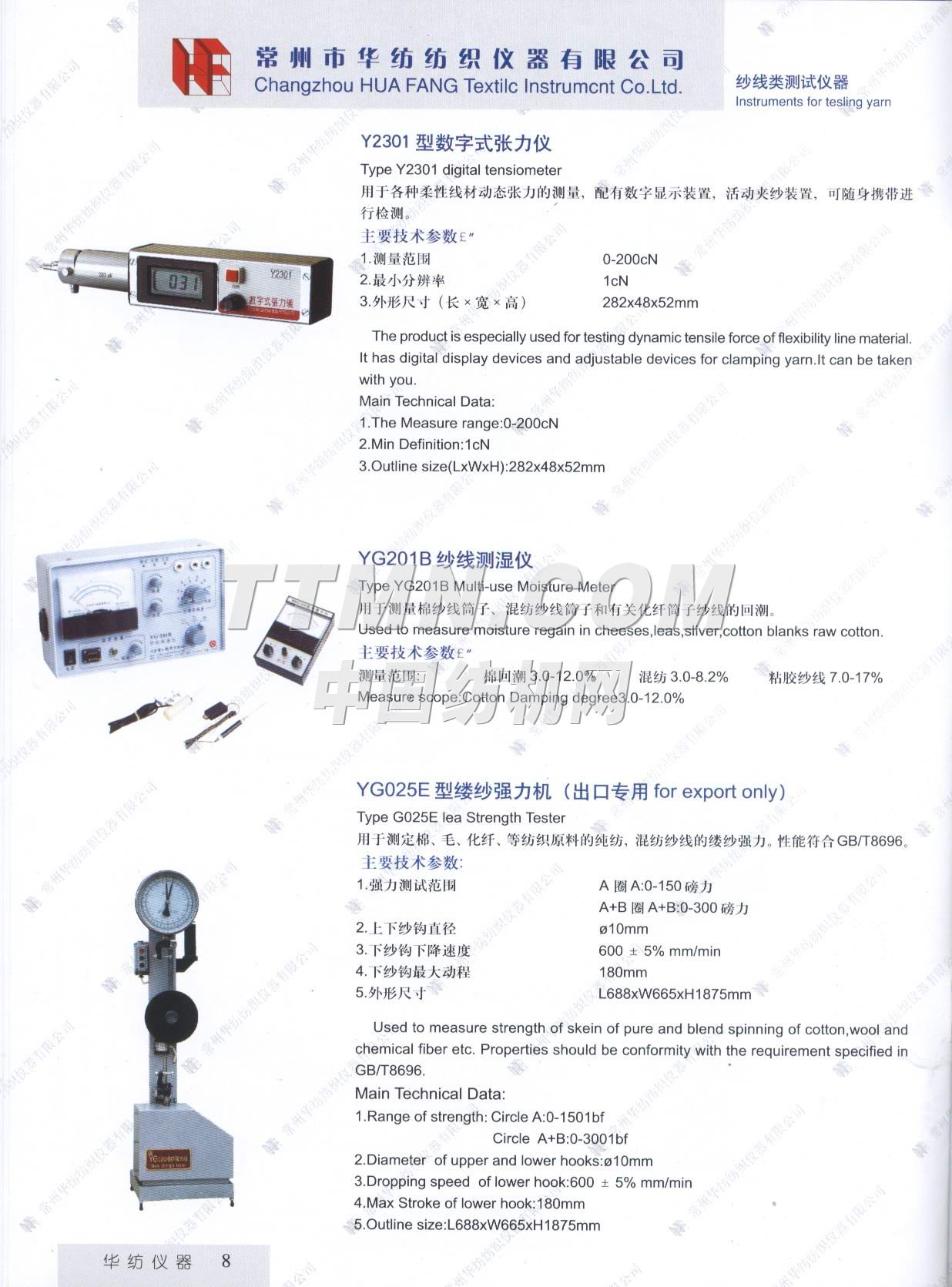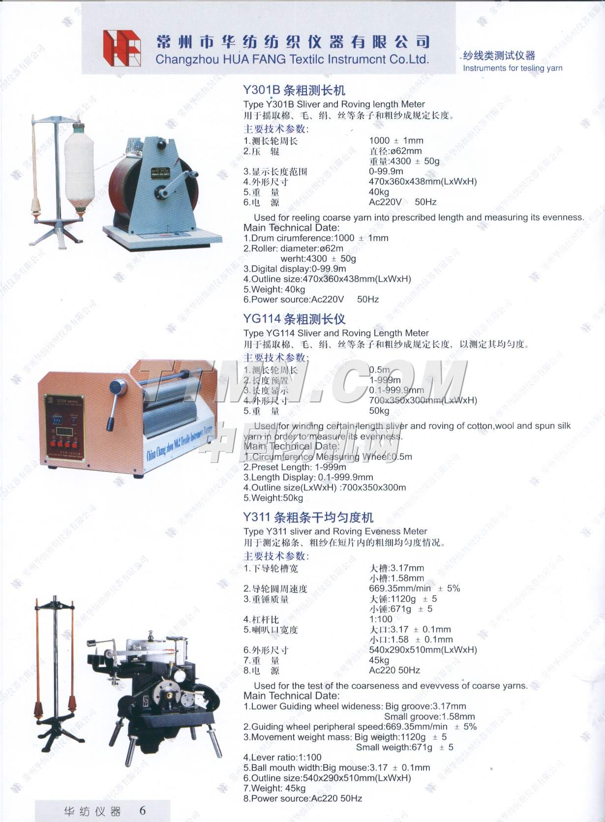 常州市華紡紡織儀器有限公司。它是生產與銷售紡織儀器的專業廠家。主要產品有Y802N、Y101D、YG747系列恒溫烤箱,YG021(A、B、D)、YG026D、YG008D、YG001D等系列電子式強力機,YG321、Y145C、Y331A、YG982等系列纖維紗線、印染的專業測試儀器。產品質量穩定,可靠,所測數據能自動顯示,并打印輸出。公司宗旨: ● 產品更精致, ● 服務更周到, ● 做更好的產品,滿足您的要求。 ...