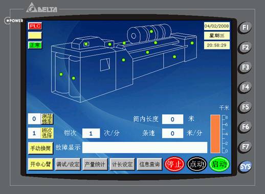 子界面包括參數設定、產量統計、故障查詢、語言轉換等十幾個畫面,內容豐富、操作直觀,可使操作人員在極短的時間內按屏幕提示就可熟悉設備的操作。