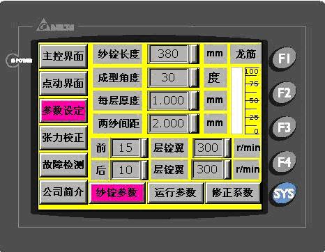 A.觸摸屏: 四軸懸錠式粗紗機參數設定量大,本屏可直觀、便捷的設定和監控各種參數;