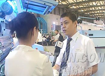 (圖一:中國紡機(jī)網(wǎng)記者現(xiàn)場采訪上海克羅斯羅爾工藝總技師 陳煒)