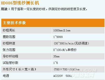 您所在的位置:紡機網 > 產品庫 > HD086型縷紗測長機