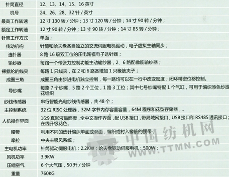 精智(SmartPro ES)單面提花無(wú)縫內(nèi)衣針織機(jī)技術(shù)參數(shù):