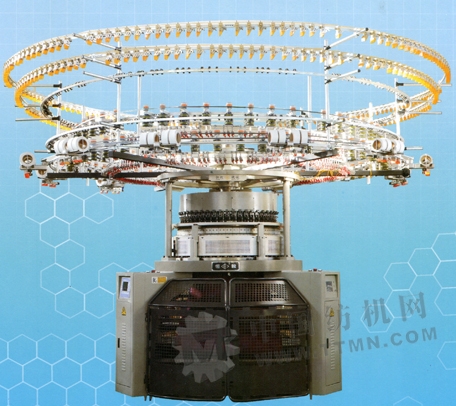 3、搭配三功位提花選針系統(成圈、集圈、浮線),可編制花型范圍不受限制的各種調線提花織物,廣泛用于高檔服裝。