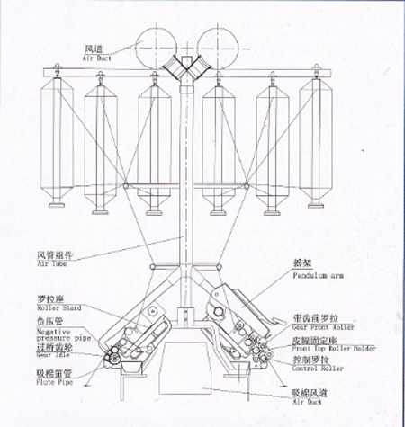 輸出羅拉安裝在異型管內,帶齒前羅拉輸出的動力通過過橋齒輪傳遞給輸出羅拉。