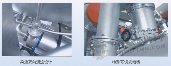 特殊可調式噴嘴:可選擇不同的液流模式,適臺不同克重織物加工,提高染色機的靈活性。