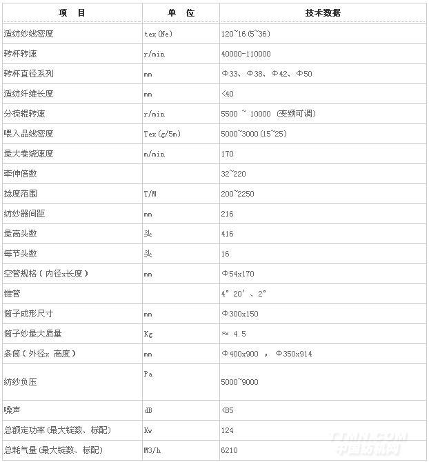 >>高產(chǎn)。轉(zhuǎn)杯最高轉(zhuǎn)速可達110,000轉(zhuǎn)/分,引紗速度最高為170米/分,紡紗器頭數(shù)最大可增加到352頭