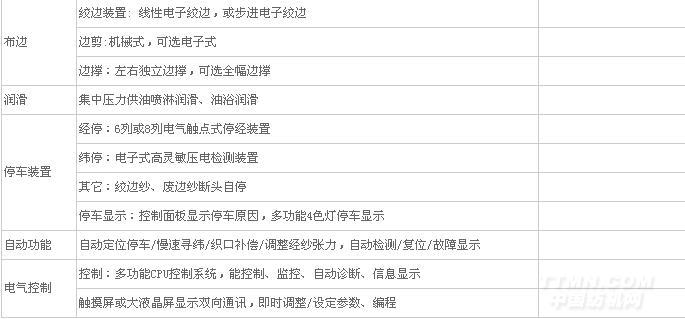 ★ 自動控制功能:過載保護、斷經自停、斷緯自停、織口自動補償、經紗張力自動調整、自動控制織邊絞邊時間、空打緯(緯數數字控制)、網絡監控、自動檢測/復位、自動故障診斷、自動顯示等。