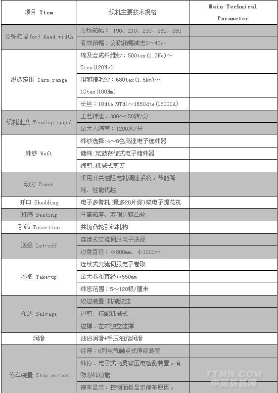 對(duì)織機(jī)開口、引緯、送經(jīng)、卷取等機(jī)構(gòu)進(jìn)行特殊設(shè)計(jì),適應(yīng)品種廣,可織造牛仔布、白坯布、粗紡呢絨、勞動(dòng)布和燈芯絨布、室內(nèi)裝飾用全棉和混紡布、輕型和中厚型工業(yè)纖維、亞麻布、玻璃纖維等。