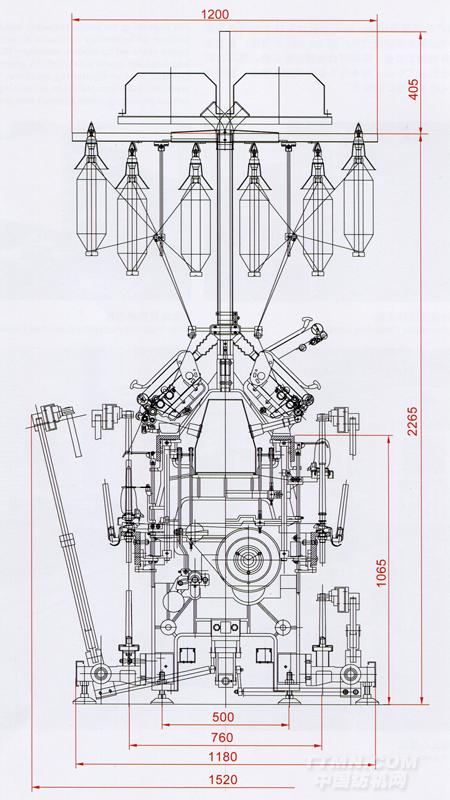 TH578系列緊密紡細(xì)紗機(jī)橫剖面圖