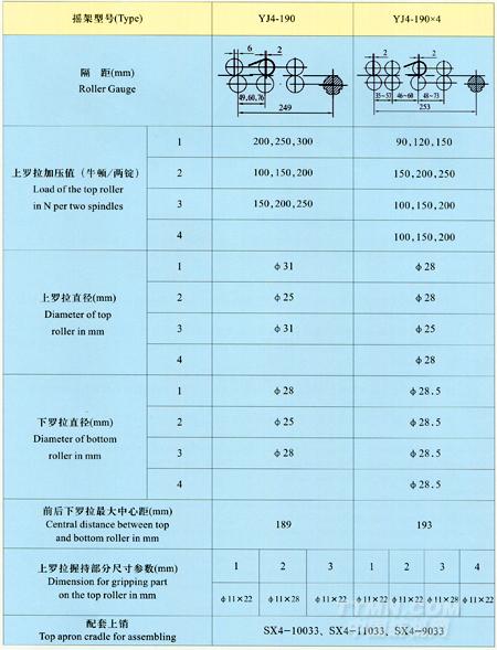 YJ4-190系列粗紗彈簧搖架主要技術參數
