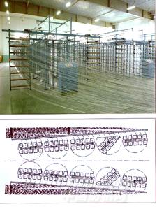 V型循環式筒子架主要和整經短纖維的分批整經機配套使用。主要優點是架身短,架子與伸縮筘間無倒紗器,特別適用對摩擦敏感的短纖維,實現低張力水平高速運行,有利于減少紗線的張力差異和整經時候的斷頭率。交錯的紗筒布置優化了空間利用,V型內側可存放預備筒子架,便于工人操作,換筒時間短,減少整經時停車時間。該筒子架特別適應高速整經。
