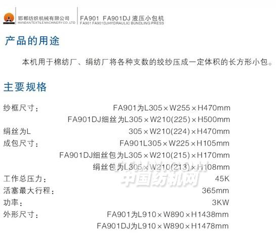 您所在的位置:紡機網 > 產品庫 > FA901、FA901(DJ)型液壓打包機