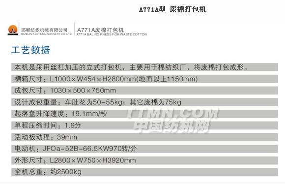 您所在的位置:紡機網 > 產品庫 > A771A型 廢棉打包機