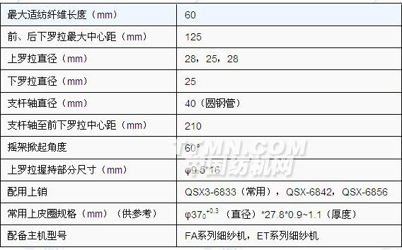 5、 前、中加壓桿組為一體套裝在后分配桿內,可嚴格保證搖架主牽伸區羅拉的平行度。