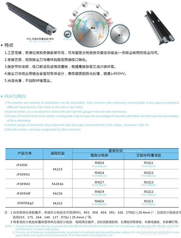 GFB-ⅢQ系列梳棉機固定分梳板裝置、Ⅱ型棉網清潔器
