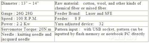 無縫內(nèi)衣機(jī)技術(shù)參數(shù):