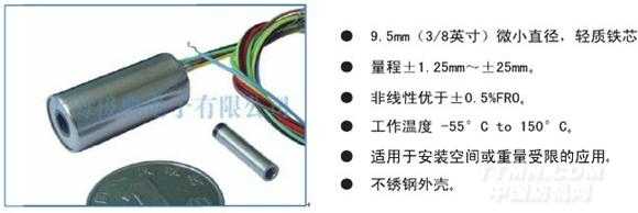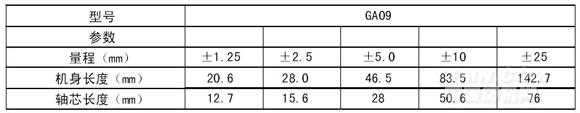 極典電子公司推出的GA09系列是9.5mm直徑、可選量程從±1.25mm至±25mm、交流供電的小型非接觸式位移傳感器,既能滿足OEM客戶的應用,也能滿足終端用戶的要求。輕質的鐵芯使這些微型的LVDT非常適用于高響應的動態(tài)計量,有助于減小應力以及保證鐵芯激勵組件結構的完整性。線圈和鐵芯直接的緊密電氣耦合可得到高度靈敏的測量效果。磁性不銹鋼外殼可以抗電磁干擾、屏蔽靜電。