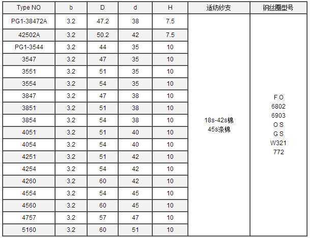 4、新鋼領上車時,鋼絲圈要偏輕選用,一般可選用比正常使用的號數輕1號,但要視紡紗張力而定。