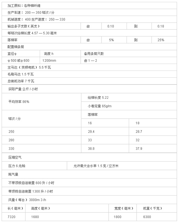2、牽伸機構: 三上五下氣動式牽伸裝置,齒形帶傳動,傾斜式牽伸機構減少和圈條器的距離,防止意外牽伸的產生。