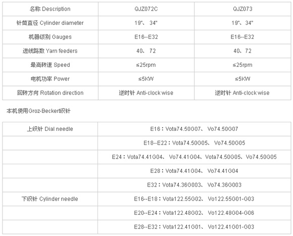 QJZ072C、QJZ073 雙面圓緯機