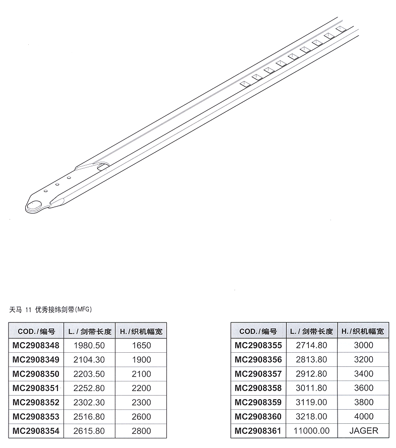 您所在的位置:紡機網 > 產品庫 > (MFG)天馬11超優秀接緯劍帶