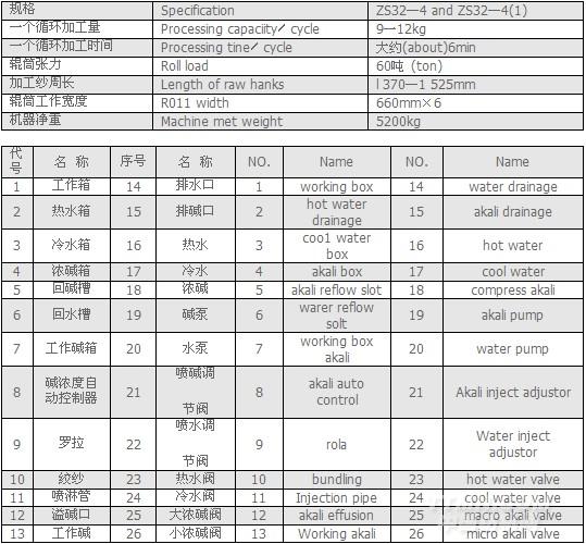 設備主要用于絞狀棉紗、麻紗等絲光工藝。通過燒堿等化學品和絲光機拉力的作用,改變紗線纖維的分子結構,以達到最高的光反射條件,輔助以燒毛工藝使紗線在前工序的表面質量提高,加上采用噴射染色新工藝,促使其染色過程中活性染料附著于產品本身而達到染透度深而不褪色,使絲產品色光鮮艷亮麗呈真絲狀。