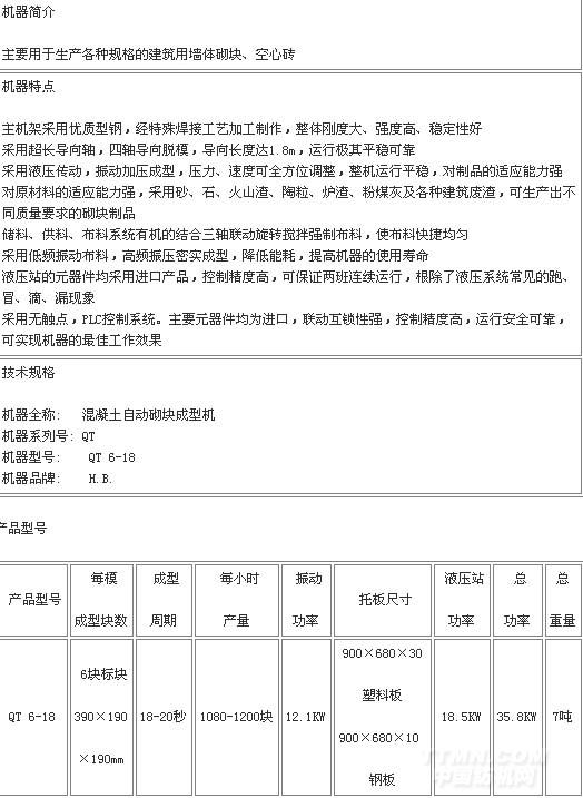 惠邦機(jī)械(營口)有限公司 產(chǎn)品介紹: 技術(shù)規(guī)格砌塊機(jī)QT6-18 " />