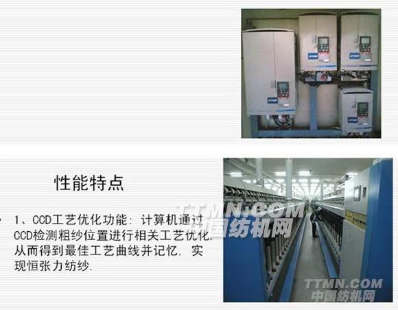 機(jī)型概況:該機(jī)型采用現(xiàn)金的PLC、工業(yè)計(jì)算機(jī)控制技術(shù)和工程電子齒輪技術(shù)替代傳統(tǒng)粗紗機(jī)的成形機(jī)構(gòu)、錐輪機(jī)構(gòu)、差速機(jī)構(gòu)以及除牽伸以外的所有工藝配換齒輪,是目前國內(nèi)最先進(jìn)機(jī)電一體化高速懸錠粗紗機(jī)。