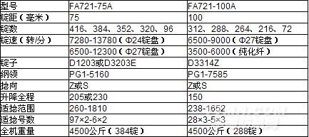 FA721-75A,100A系列環錠捻線機,適用于棉、棉與化纖、混紡紗及純化纖的捻線加工,供機織和針織用線。