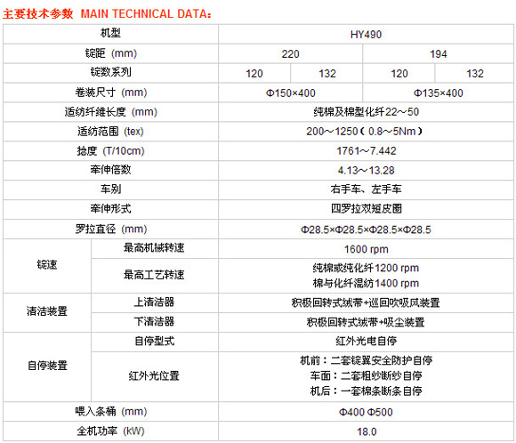 HY490型棉紡電腦粗紗機由宏源公司在紡紗領域多年來積累的強有力的技術訣竅支持下開發(fā)的。最高機械速度1600rpm ,具有競爭力的投資成本,優(yōu)異成紗質量。專為客戶在選用宏源粗紗機提供了更多的選擇。可以最低的投資實現對老機型進行電腦化控制改造。
