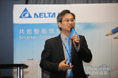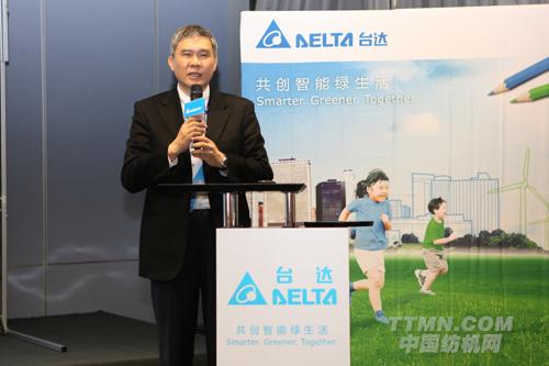 臺達機電事業部張訓海總經理介紹臺達所展出之高階工業自動化系統整合解決方案。