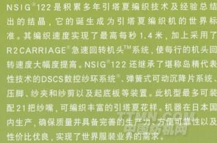 NSIG122是積累多年引夏塔編織技術(shù)及經(jīng)驗總結(jié)出的結(jié)晶,他的誕生成為引夏塔編織機的世界標準。