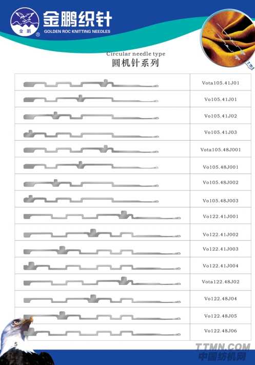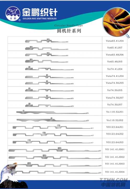 其中圓機(jī)針系列包括Vota65.41J04、VO74.41J04、V0110.52J01等35款不同型號的圓機(jī)針。