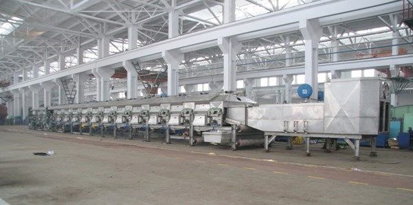 工藝分區第一水洗(2個區)、脫硫(2個區)、第二水洗(2個區)、漂白(2個區)、第3水洗(2個區)、第四水洗(1個區)、上油(2個區),共計13個工藝區,每區長度2000mm。上油前一道軋車,上油后一道軋車。第一水洗(1個區)、脫硫(2個區)、第二水洗(2個區)、漂白(2個區)、第3水洗(2個區)、第四水洗(1個區)、上油(2個區),共計12個工藝區,每區長度2000mm。上油前一道軋車,上油后一道軋車。第一水洗(1個區)、脫硫(2個區)、第二水洗(2個區)、漂白(3個區)、第3水洗(2個區)、第四水洗(2個區)、上油(2個區),共計14個工