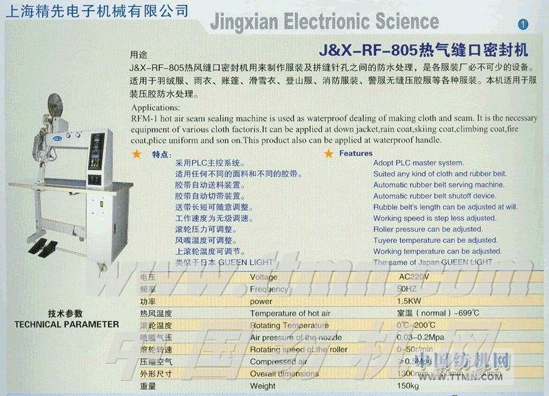 J&X-RF-805熱氣縫口密封機 -- 上海精先電子機械有限公司