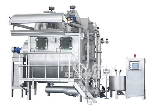 產品概述:節能環保型氣流染色機,是采用空氣動力學原理,將高速氣流注入噴嘴,同時將另一管路注入噴嘴的染液霧化,既帶動織物運行,又使得染液與織物在很短的時間內接觸,以到達均染的目的,與傳統染色機截然不同的是,水僅僅是作為染料的載體,而帶動織物運行的是高速氣流,因此它的浴比可以達到非常小,充分體現升降溫快,能耗低,排污少等特點.再加上織物進入噴嘴后能穩定地移動打開,所以不會造成折痕.