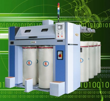 本機在三上三下壓力棒牽伸為基礎配置上,可選用在兩個牽伸區之間增加一個整理區,變為四上四下壓力棒牽伸型式。適用于22-76mm范圍內的棉、毛、麻及各種化學纖維等,真正實現“柔性牽伸”。采用同步帶傳動技術。總牽伸變換在全球首次采用電子齒輪,可調整定量和牽伸倍數,方便可靠。上圈條傳動用交叉皮帶傳動,取代傳統的螺旋傘齒輪傳動。采用氣動牽伸及壓輥平行導軌加壓,以穩定兩加壓區并適應不同品種的最優化。采用自動積極斷條機構。清潔吸風系統采用自動除棉機構,提高吸風除塵效果。電氣采用PCC機控制,變頻調速。采用在線檢測技術。