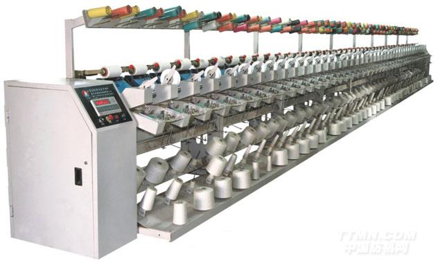 本機是將兩股或三股紗線合并成一股,并卷繞成圓形平行筒子的短纖倍捻機準備機,適用與棉、毛滌化纖