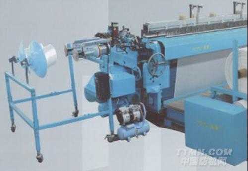 該機采用機械混緯(擺桿式),機外大卷裝,并列雙經軸,雙后梁,設置了 7組共軛凸輪打緯,凸輪開口 10片綜框。通過改進,該機有效筘幅達到了 740cm,超過了國外片梭織機 540cm筘幅。
