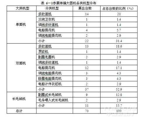 表為:參展緯編大圓機(jī)各類機(jī)型分布