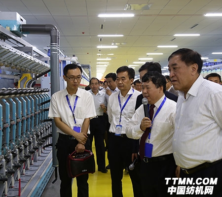 9月2日,中紡聯合會及各紡織協會、寧夏自治區各級政府、部分紡機和零配件廠家代表等嘉賓在如意集團董事長邱亞夫、中國恒天副總裁、經緯紡機董事長葉茂新、總經理姚育明、副總經理史建平的陪同下視察即將投產的寧夏如意二車間。
