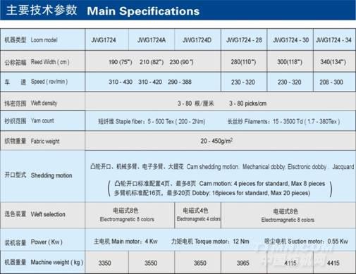 JWG1724系列劍桿織機(jī)具有優(yōu)良的機(jī)械電子性能,以控制經(jīng)紗和緯紗的張力盡可能均勻,使用戶得到高質(zhì)量的織物。能適應(yīng)棉、毛、絲、麻等天然纖維、人造以及合成纖維的薄、中、厚重織物的織造。優(yōu)美的外觀、可靠的結(jié)構(gòu)、高性能的電氣控制系統(tǒng)以及簡(jiǎn)捷的智能化操作,消耗低廉、保養(yǎng)便捷,顯示了它們的經(jīng)濟(jì)性與實(shí)用性。