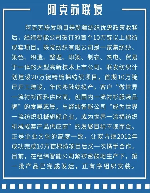 自二季度以來,受中美貿易戰影響,市場形勢更為復雜嚴峻,國內紡織企業出現壓縮產能、謹慎投資的趨勢,需求持續低迷。在激烈的市場競爭下,經緯智能公司憑借穩定的產品性能和過硬的增值服務,連續簽訂阿克蘇聯發、湖南科力嘉、四川蘆山湘鄰等多個棉紡成套項目訂單,市場占有率不斷擴大。