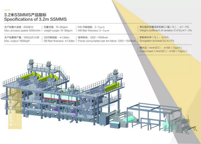 宏大紡熔復合生產線具有高速生產、產品細旦化、均勻度高、柔軟度好、高強低伸等顯著特點,在生產低克重產品時優勢顯著,主要面向高端醫療衛生領域。